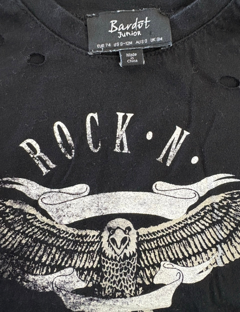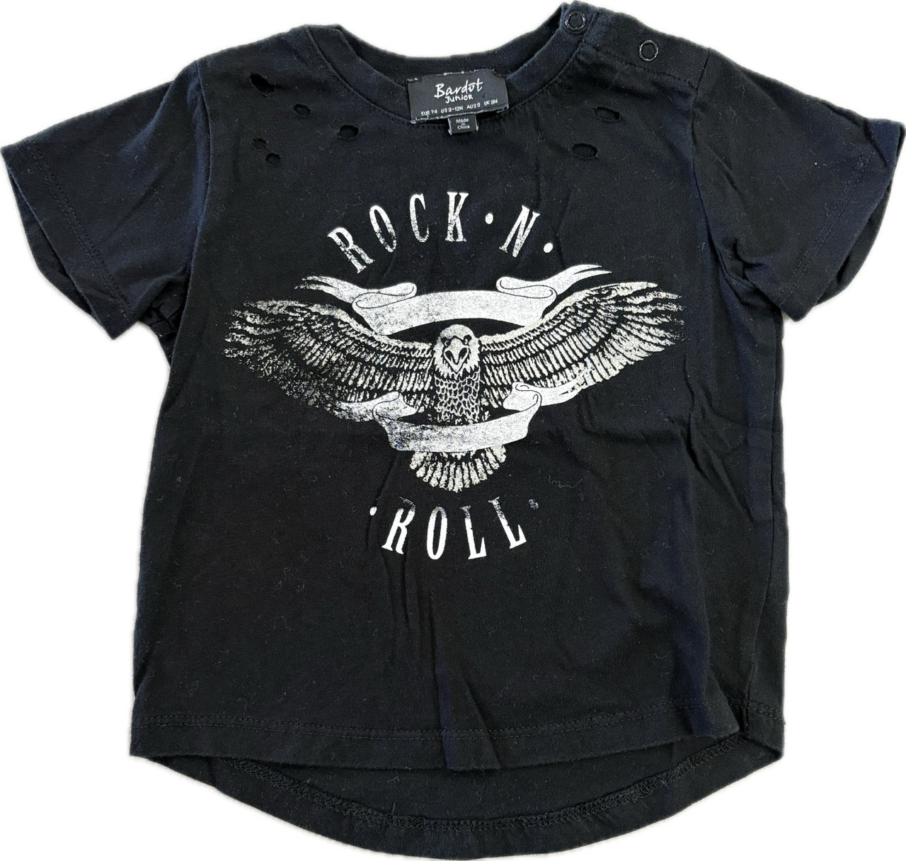 Bardot Jnr, Rock-N-Roll Distressed Tee, NWOT, Size 0 (6-12m)