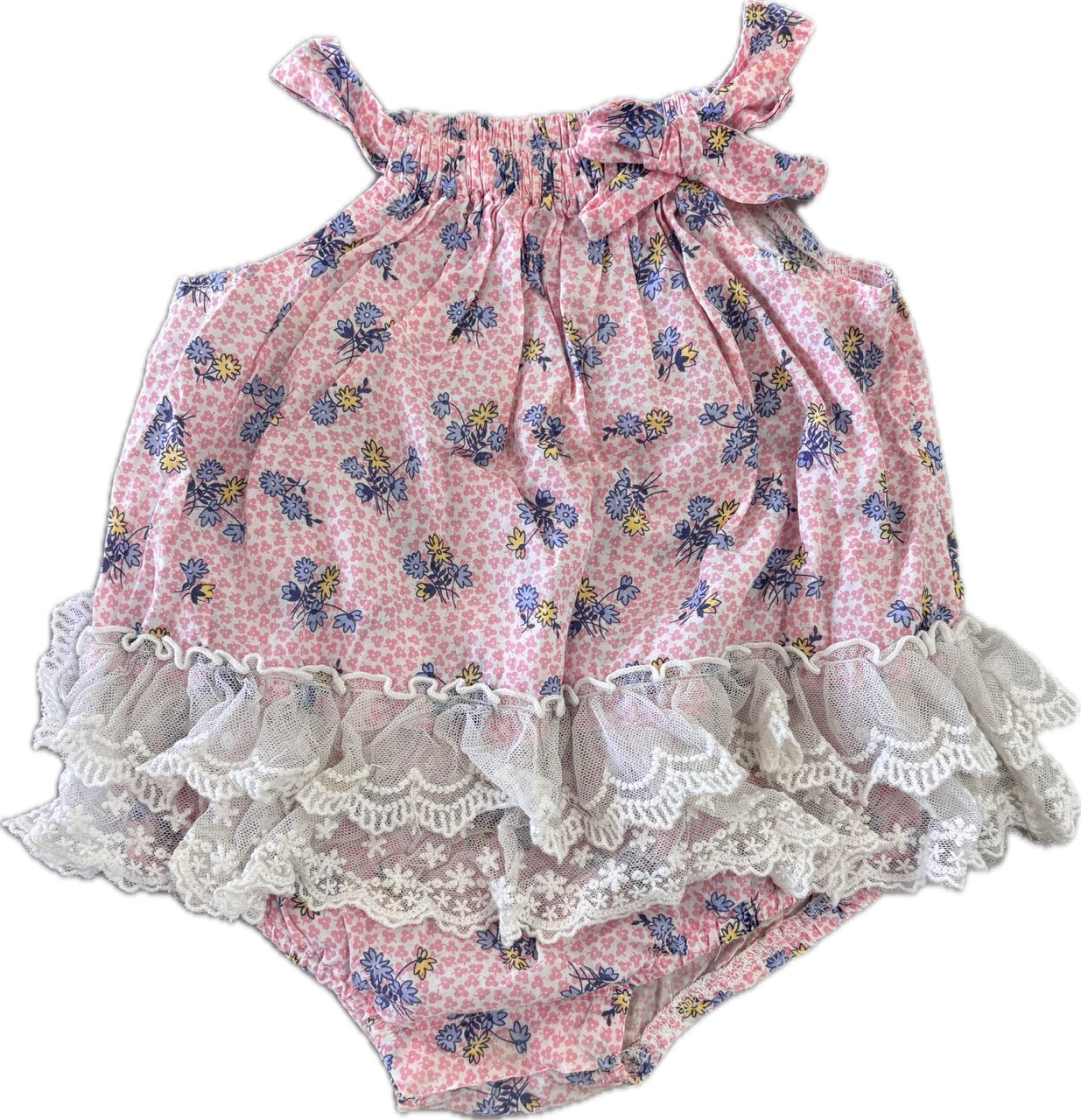 Bebe by Minihaha, Floral Romper w/Lace, EUC, Size 0 (6-9m)