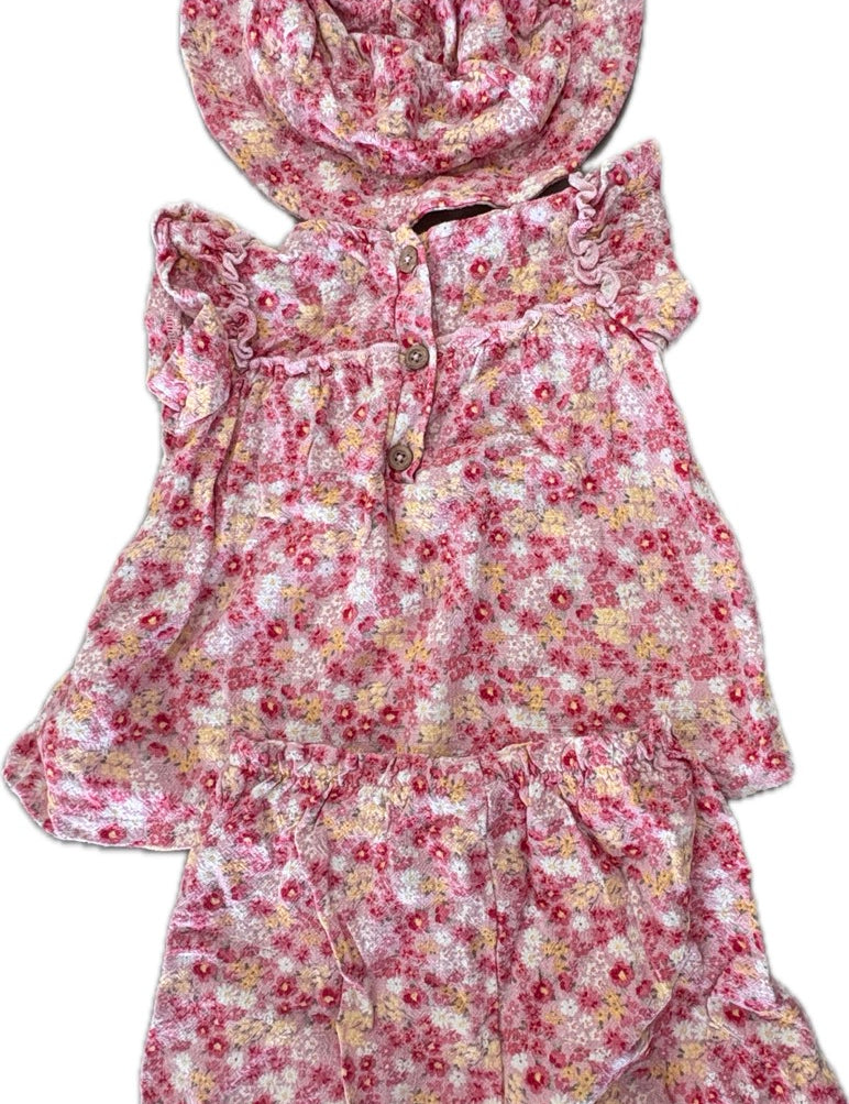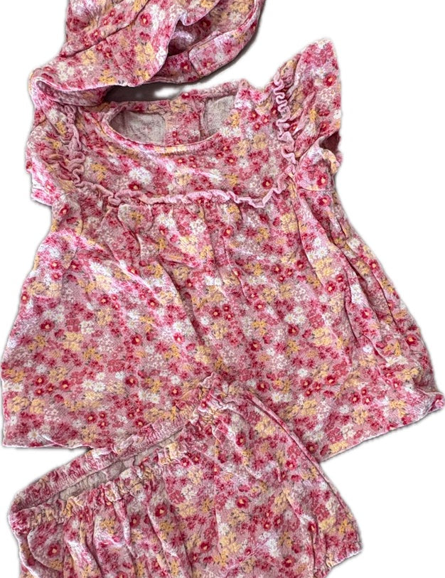 Tu, Girls Floral Top/Bloomer & Hat Set, EUC, Size 00 (3-6m)