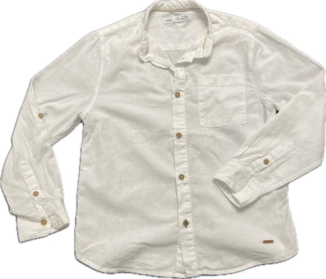Zara, 100% LINEN MANDARIN COLLAR WHITE SHIRT, EUC, Size 9