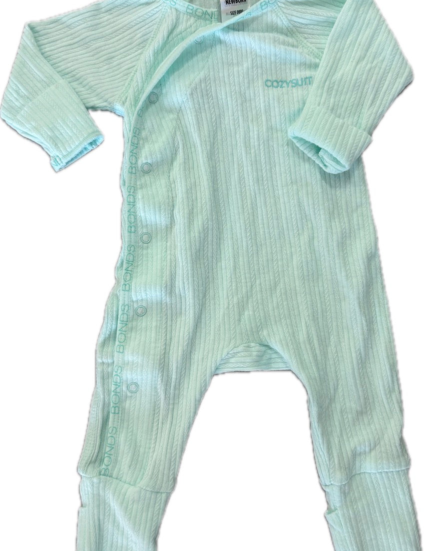 Bonds, Baby Pointelle Cozysuit in Teal, EUC, Size 000 (0-3m)