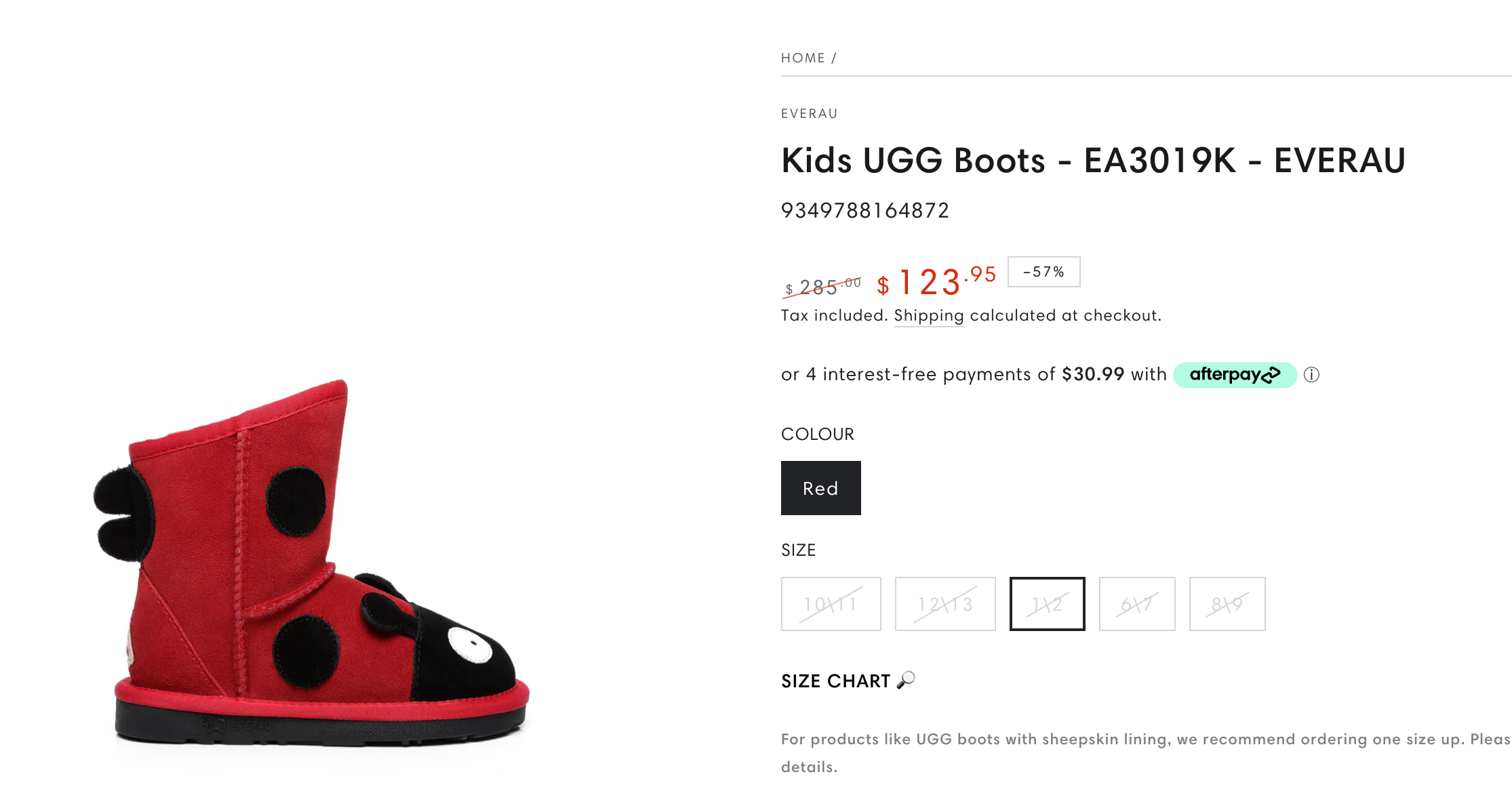 Everugg Australia, Boots Kids Ladybug, NWOT, Size 1AU, 2US