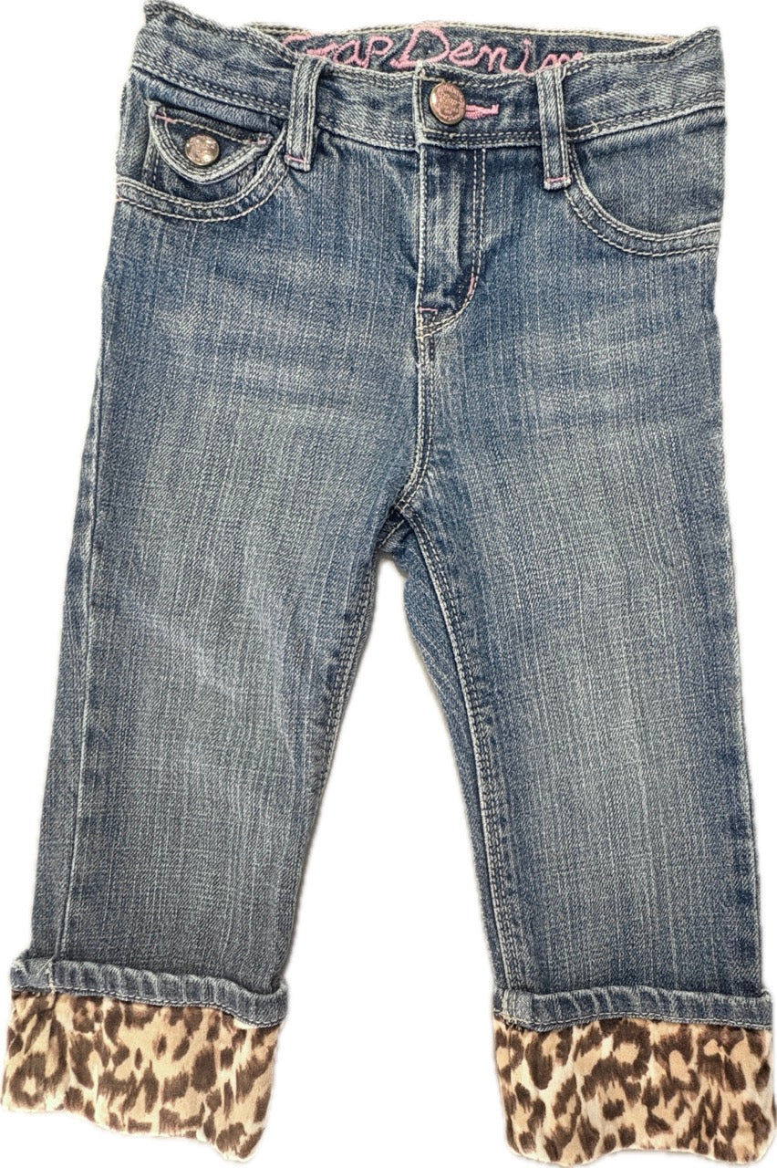 Gap, Girls Leopard Cuff Jeans, GUC, Size 2 (18-24m)
