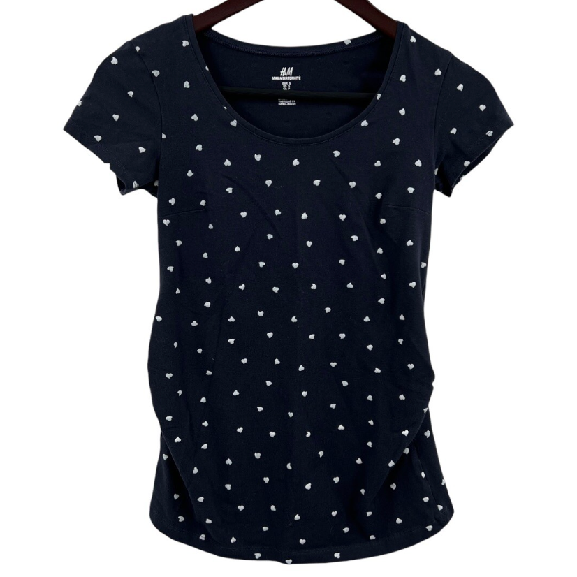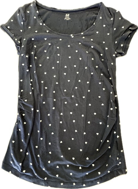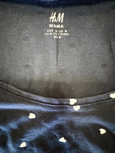H&M, Mama Navy Heart Print Tee in Navy, EUC, Maternity Size M
