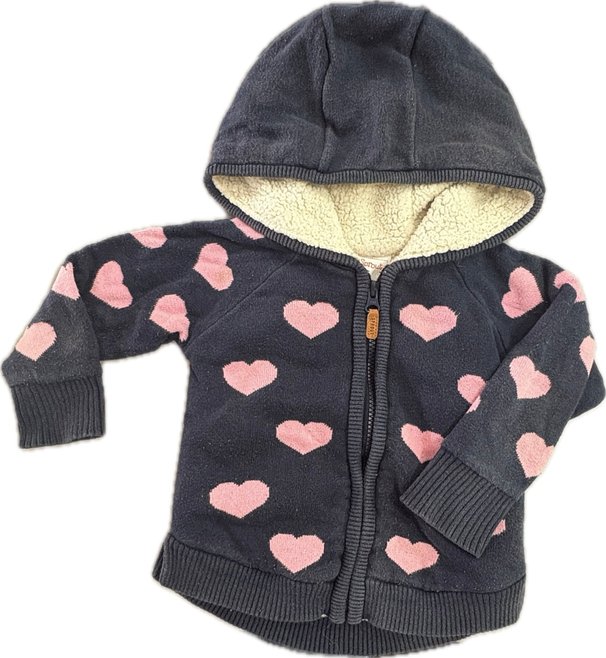 Sprout, Girls Hearted Navy Hooded Jumper, GFUC, Size 1