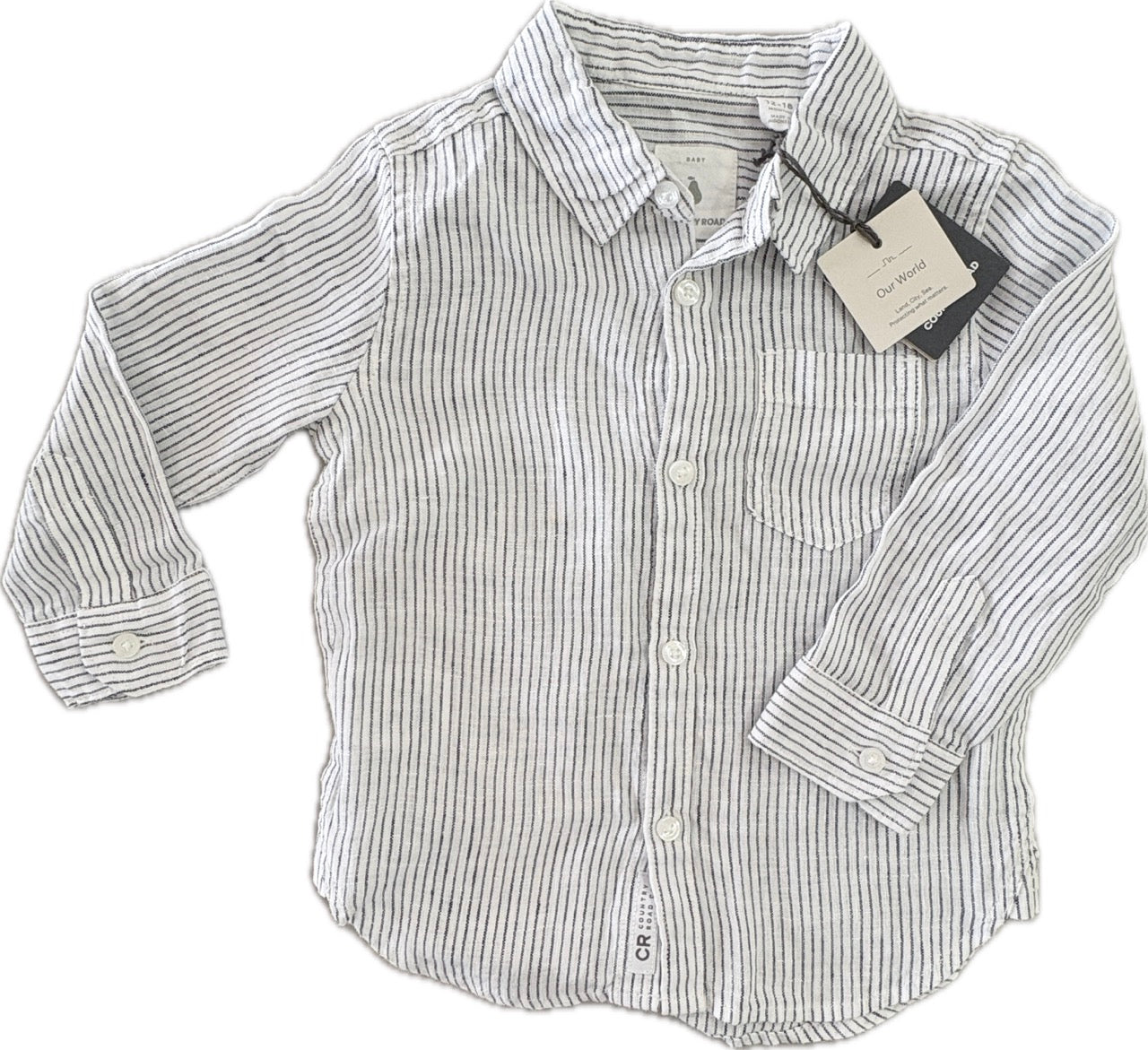 Country Road Organically Grown Linen Shirt, NWTS, Size 1 (12-18m)