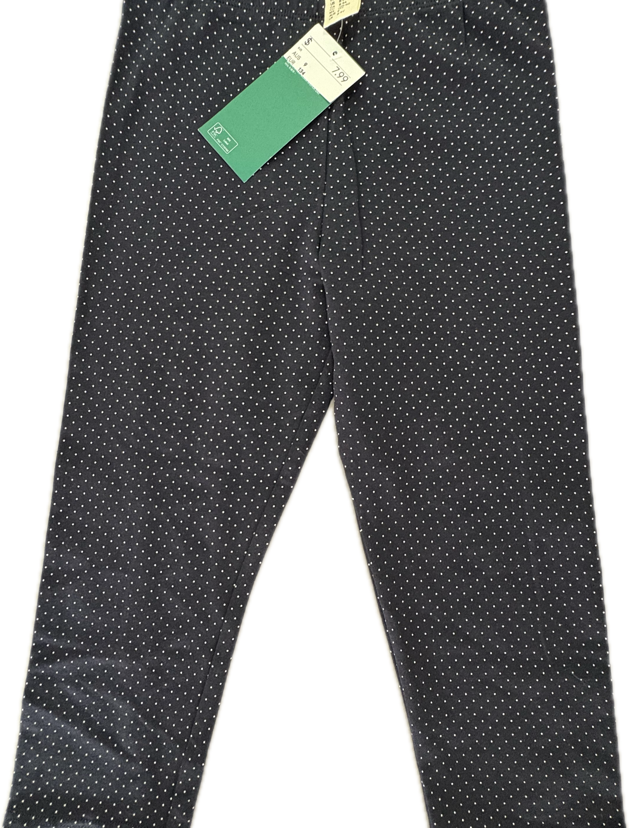 H&M, 3/4-length leggings Navy w/Polka-dots, NWT, Size 9