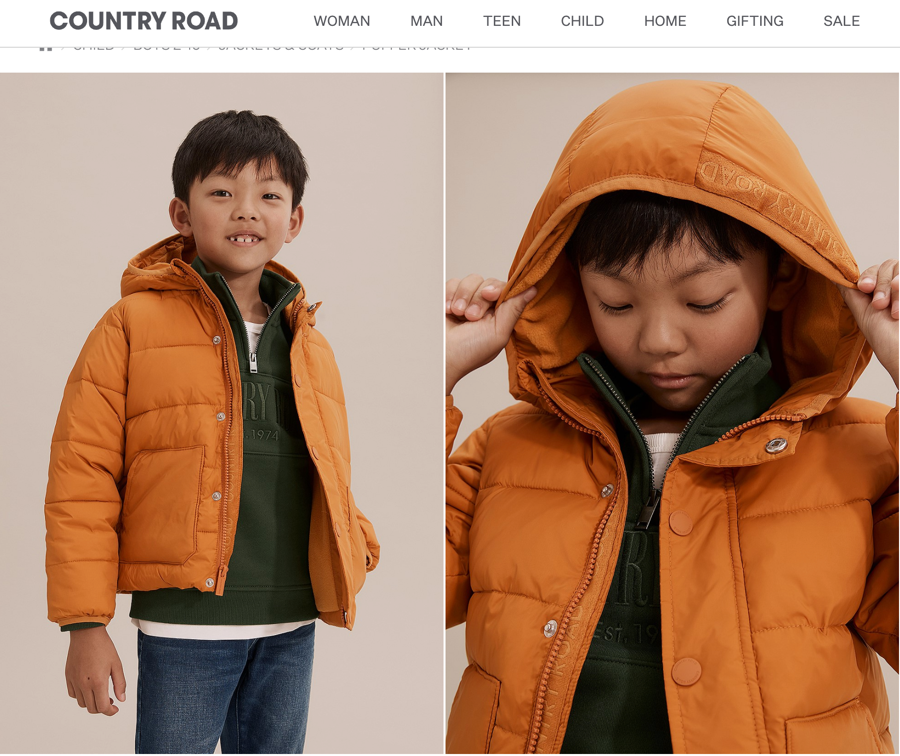 Country Road, Orange Puffer Jacket, FUC*, Size 10-11