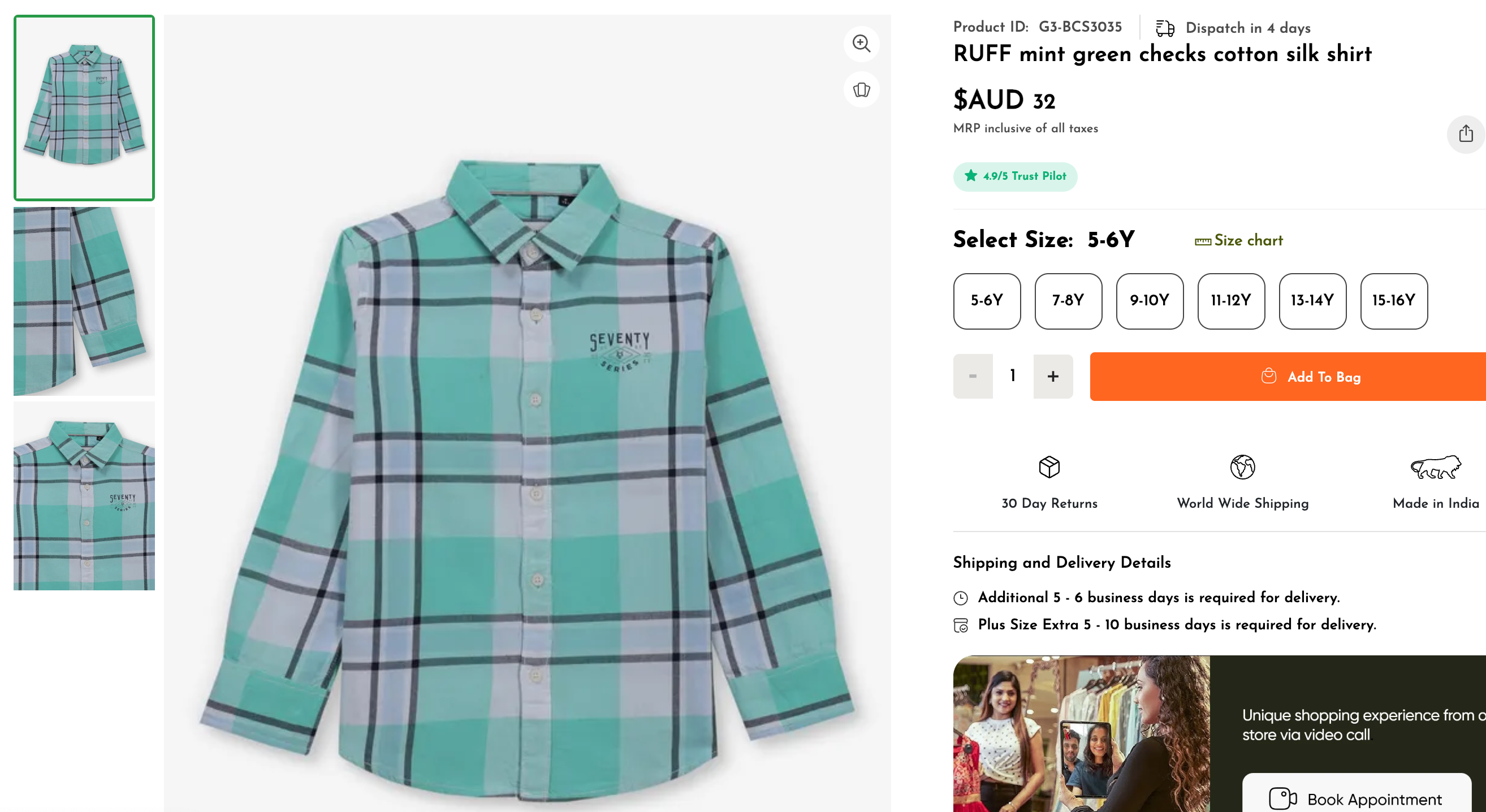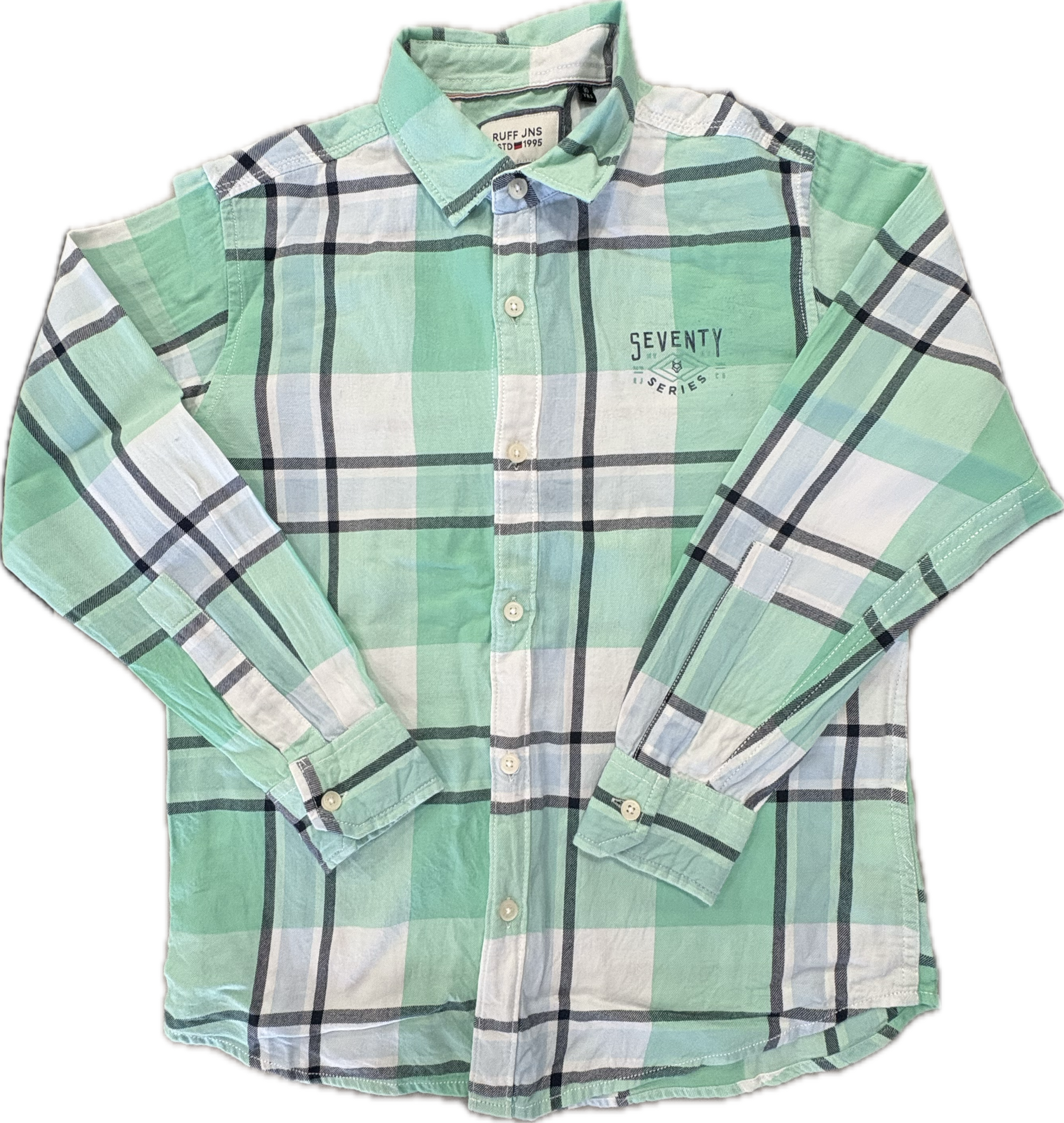 RUFF, Mint Green Checks Cotton Silk Shirt, NWOT, Size 10
