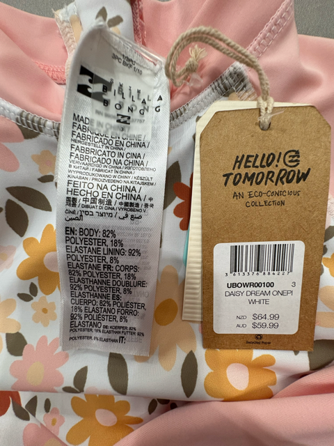 Billabong, Girls Little Daisy One Piece Rash Vest, NWT, Size 3