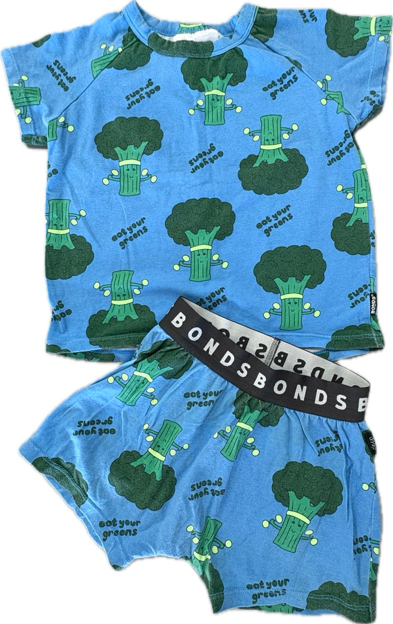 Bonds, Kids Tee Sleep Set (Broccoli), EUC, Size 2 (18-24m)