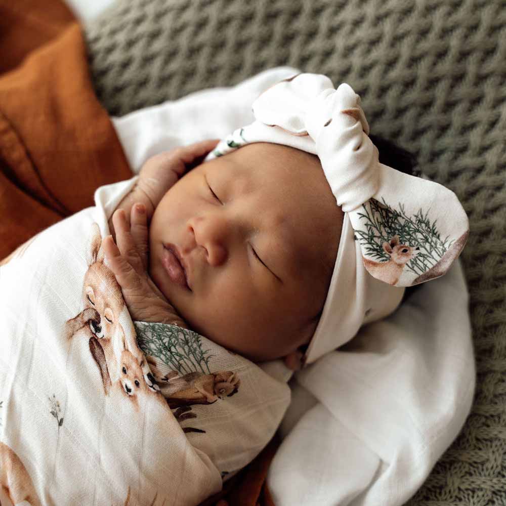 Our Snuggle Hunny organic cotton jersey topknot is soft and snuggly. This topknot features our exclusive Snuggle Hunny Kanga design and is made with Certified Organic cotton.
