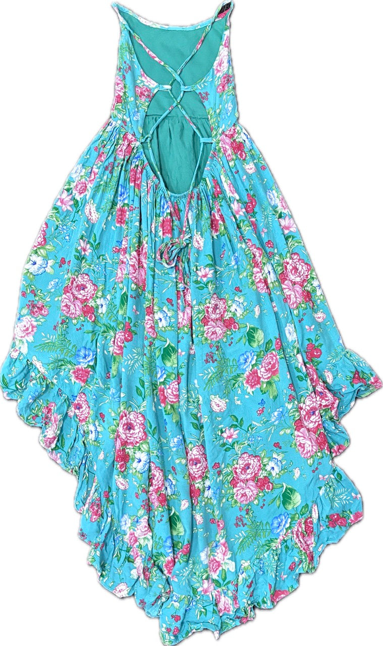 A Little Lacey, Girls Teal Floral Maxi Dress, EUC, Size 12