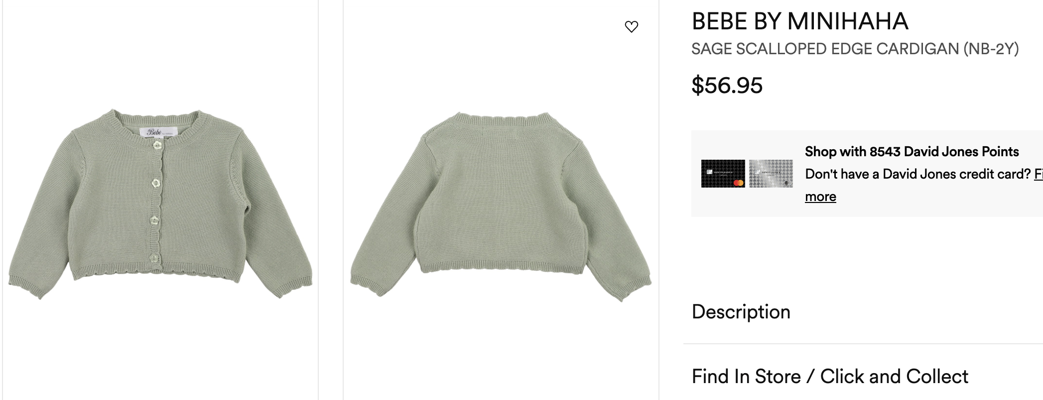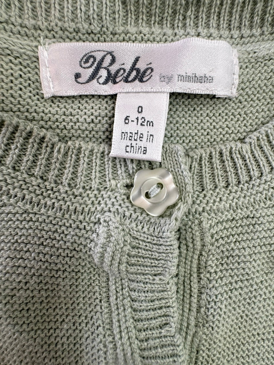 Bebe by Minihaha, SAGE SCALLOPED EDGE CARDIGAN, NWOT, Size 0 (6-12m)