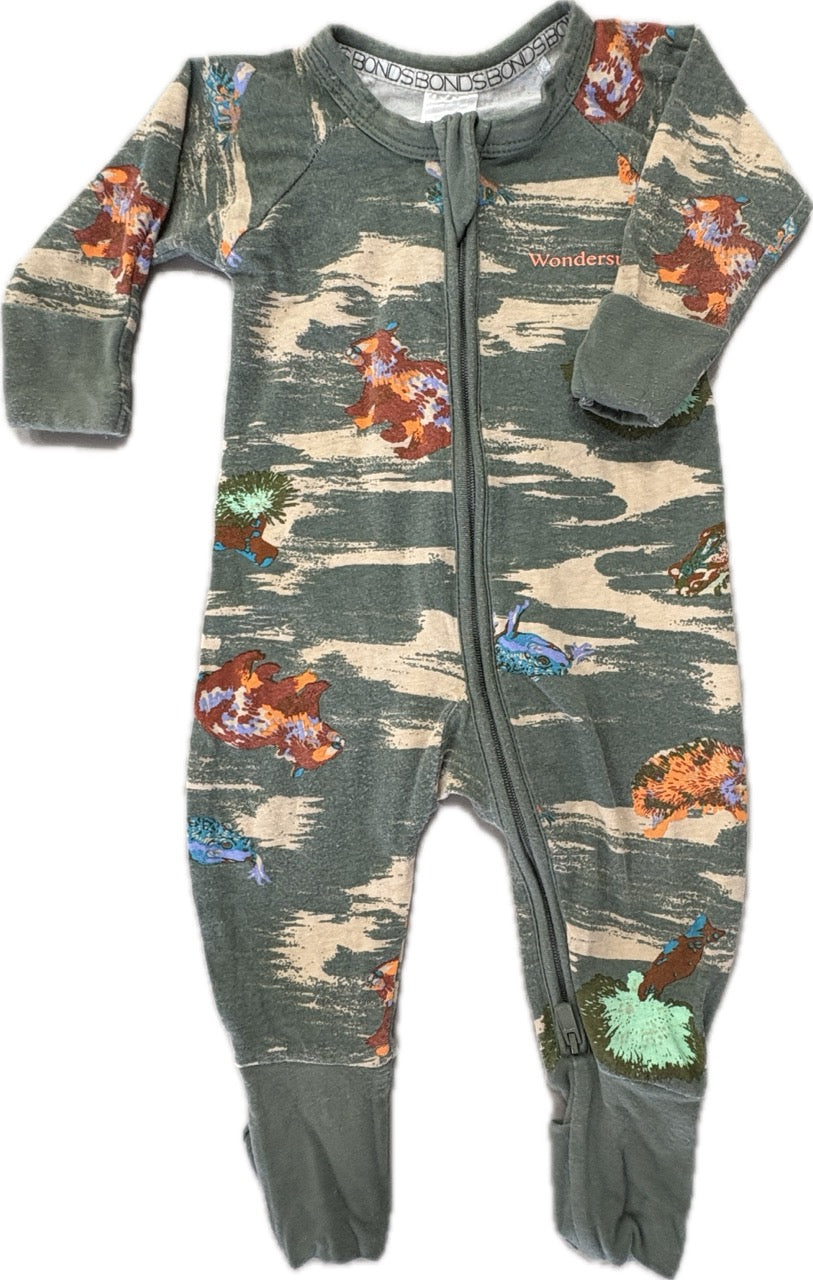 Bonds Bear Forest Zip Wondersuit, EUC, Size 000 (0-3m)