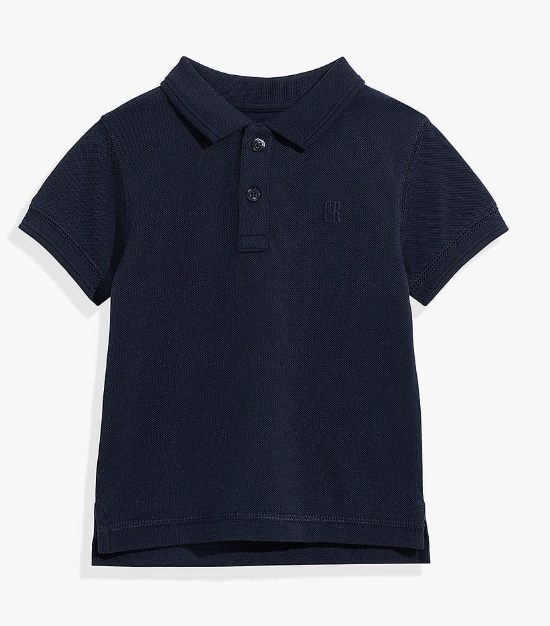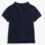 A smart addition to little wardrobes, made using cotton in a textural pique stitch. This shirt has a centre front button placket, rib tipping on the collar and cuff and an embroidered logo at the chest.