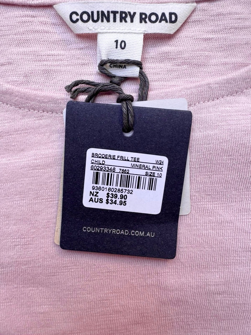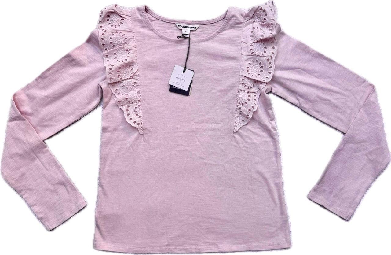 Country Road, Organically Grown Cotton Broderie Frill T-Shirt, NWT, Size 10