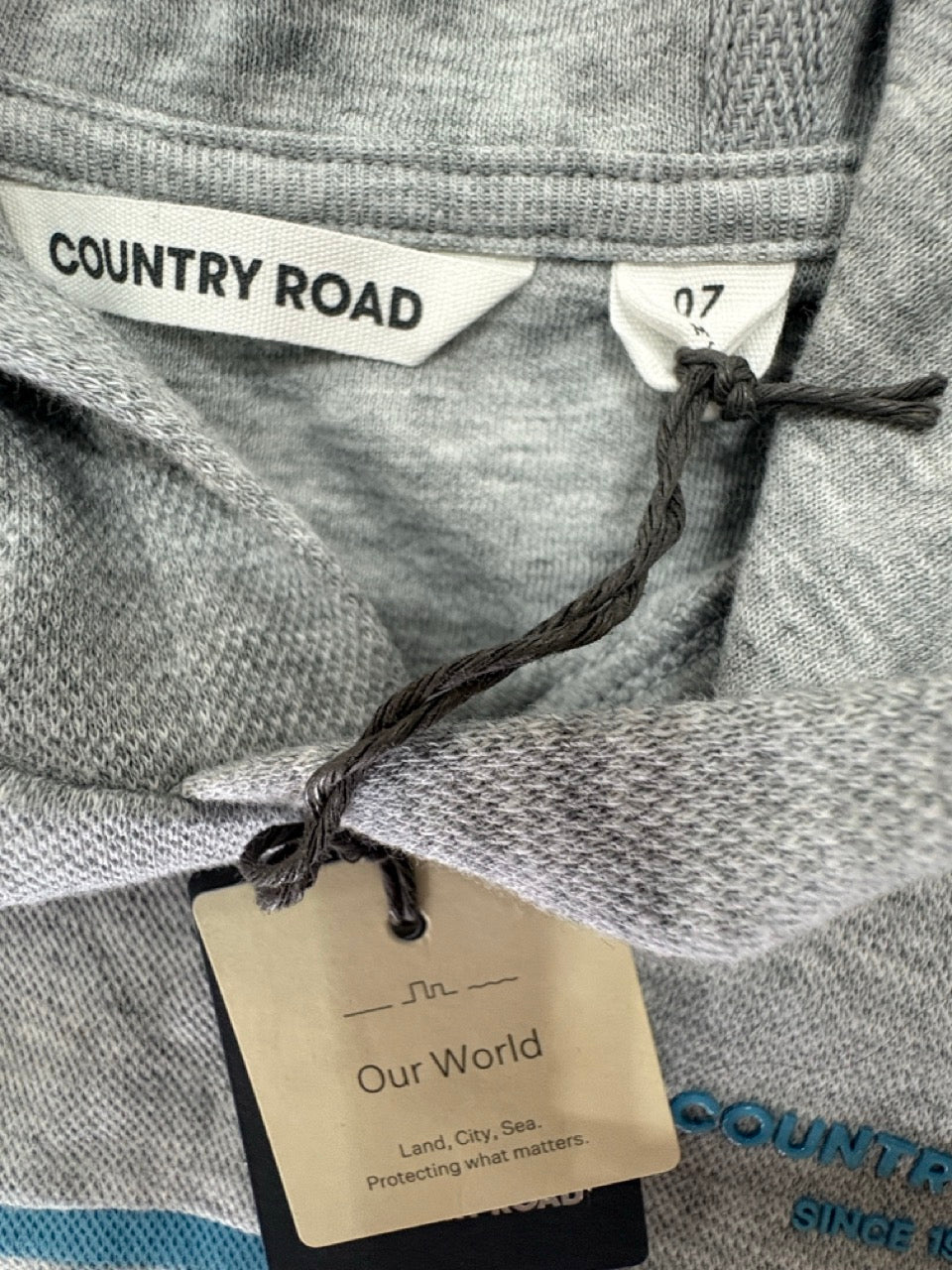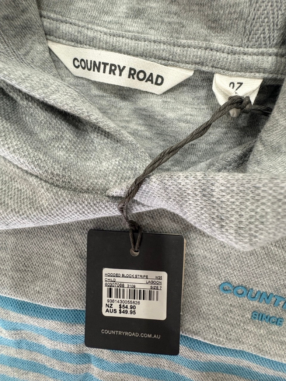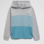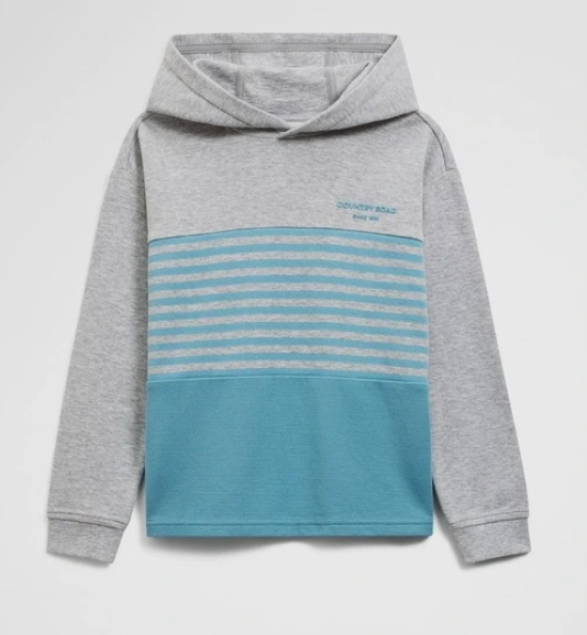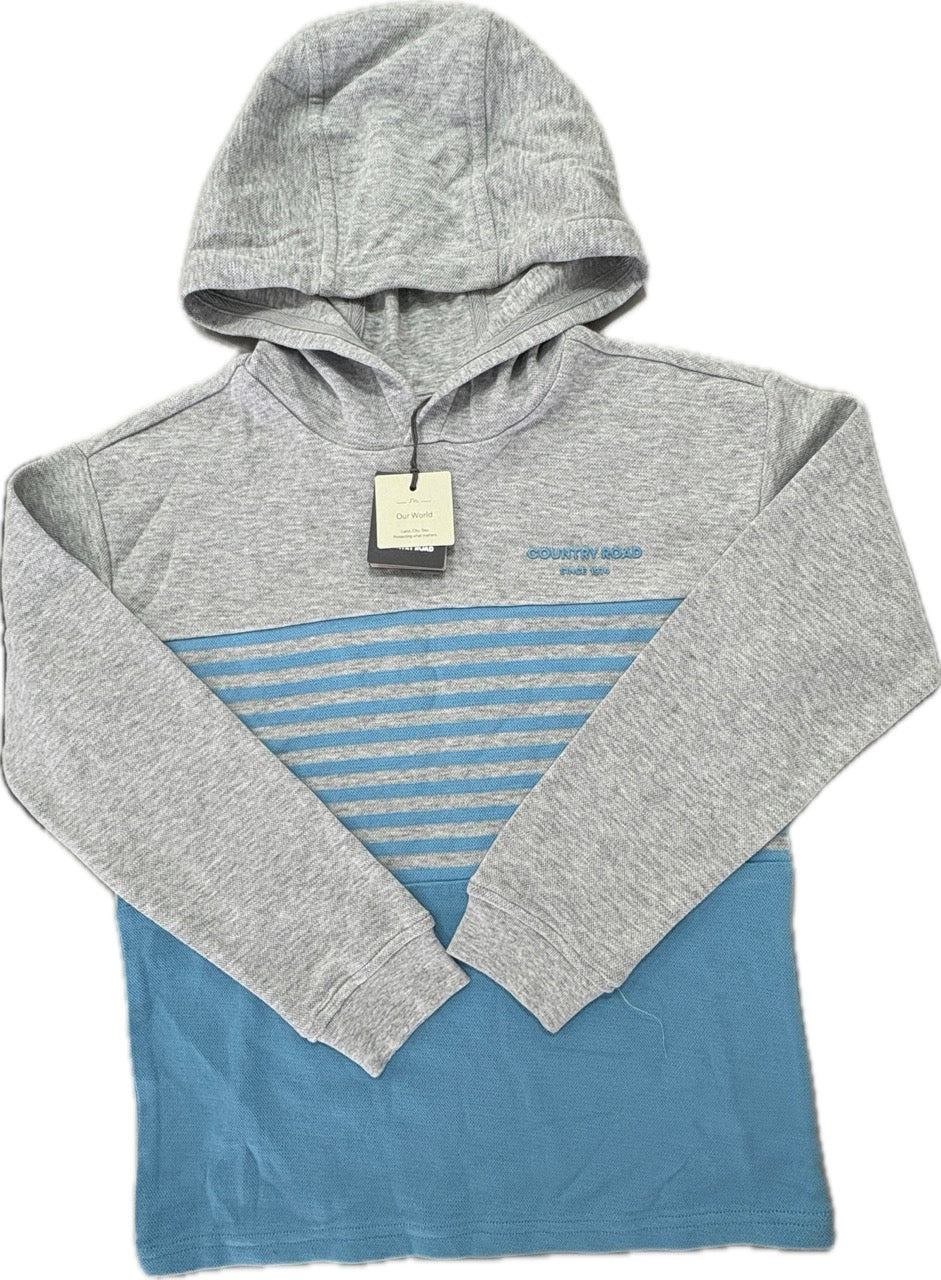 Country Road Organically Grown Cotton Hooded Block Stripe T-shirt in Lagoon, NWTS, Size 7