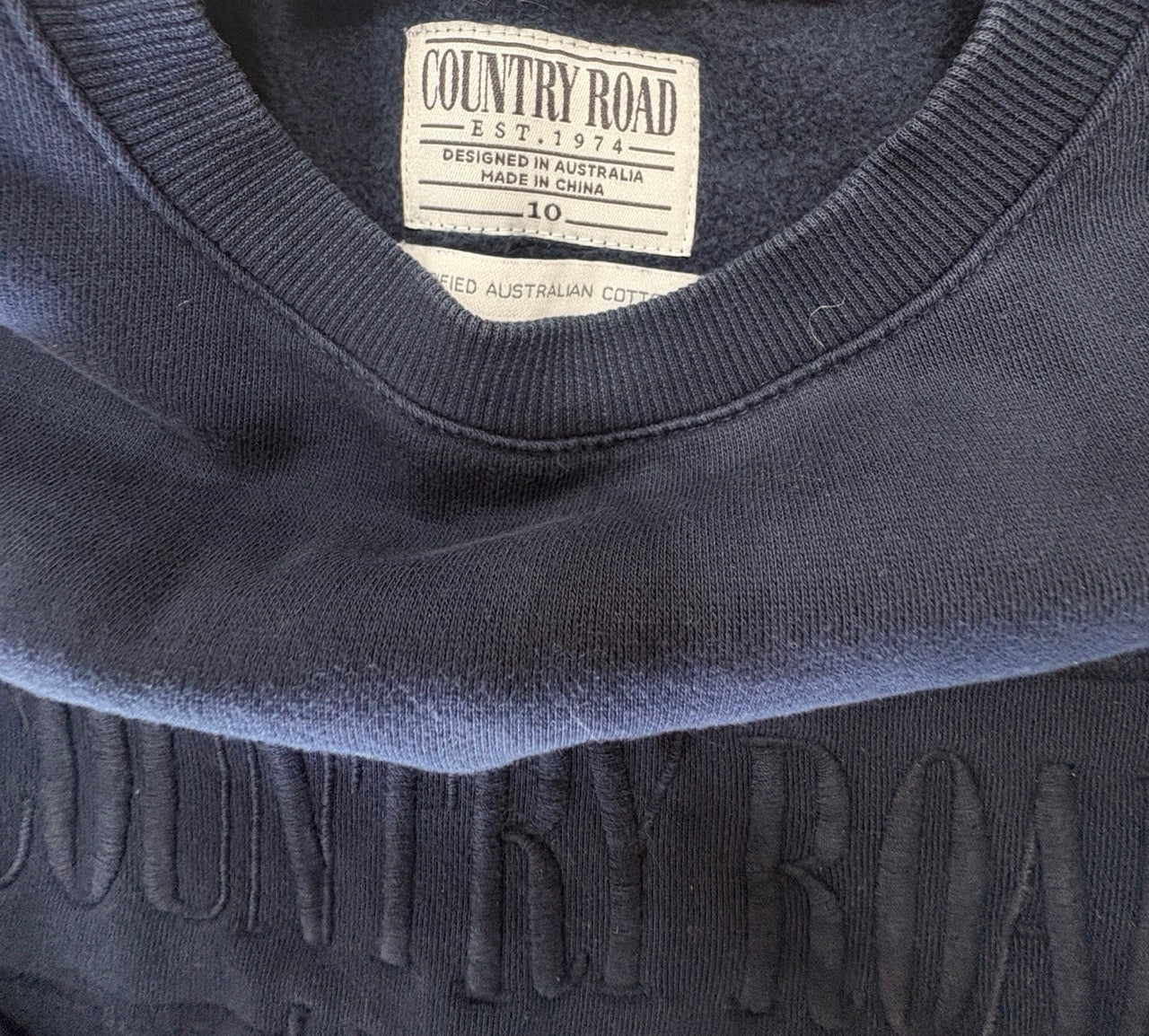 Country Road, Verified Australian Cotton Heritage Sweat Navy, GFUC, Size 10