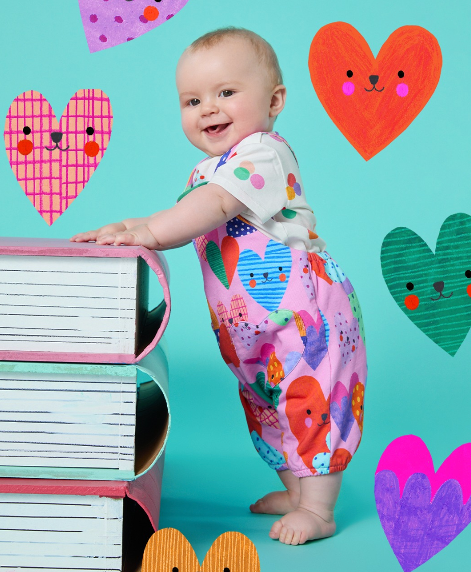 Gorman Playground, Hearts Baby Romper, EUC, Size 000 (0-3m)
