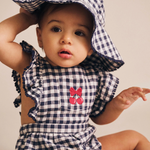 The prettiest playsuit you’ve ever seen. Made from gingham check cotton, it features exaggerated shoulder ruffles and adjustable straps for the perfect fit. Wear it alone or layer it with a tee. All sizes include stainless steel crotch snaps for easy dressing.