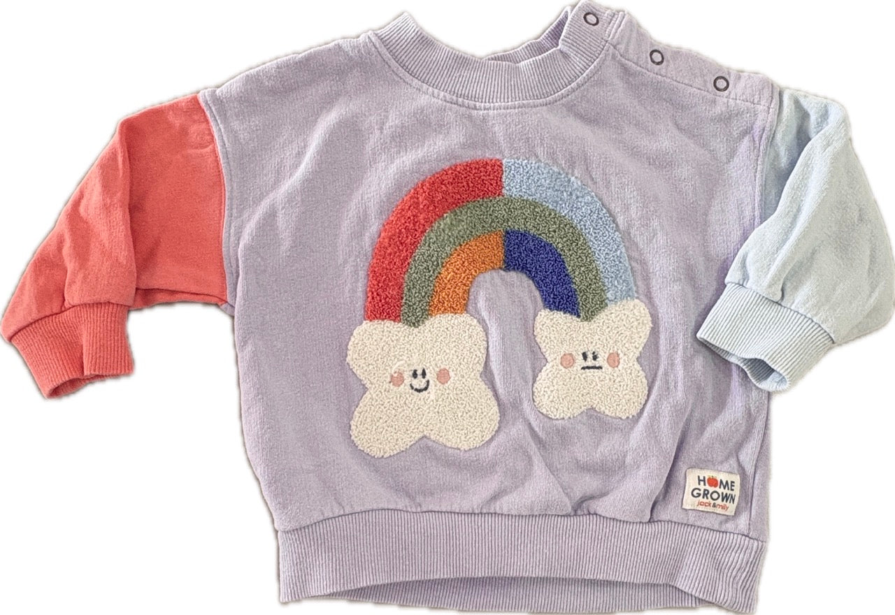 Jack & Milly Bailey Essential Boucle Rainbow Sweat Top in Lavender, EUC, Size 1 (12-18m)