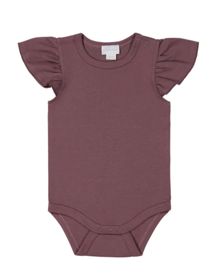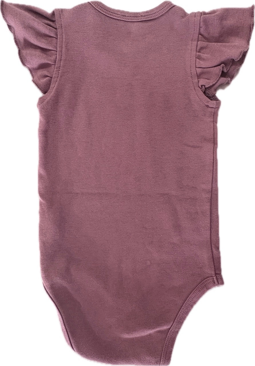 Our Organic Cotton Maddie Bodysuit – Lily is a sweet and stylish piece for your little one’s wardrobe. Featuring delicate frill shoulders and a soft lilac hue, this bodysuit is perfect for layering or wearing on its own during warmer days. Its minimal design makes it a versatile staple for any outfit.