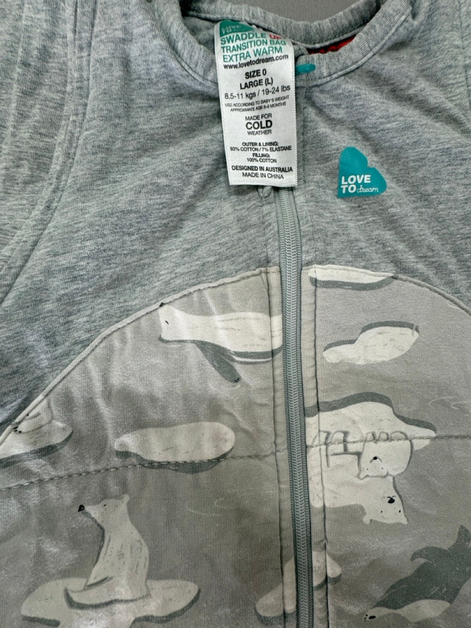 Love To Dream Swaddle Up Transition Bag Original, Size 0 (Large), Love to Dream Built-in Quilt for Cool Room Temperatures (16-20°C), 3.5 TOG, Patented Zip-Off Wings, Polar Bear, GUC (Copy) (Copy)