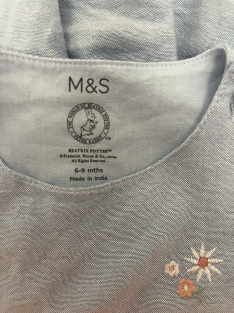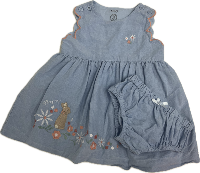 Marks and Spencer, Mini Dress - Peter Rabbit™ Chambray Dress, EUC, Size 0 (6-12m)