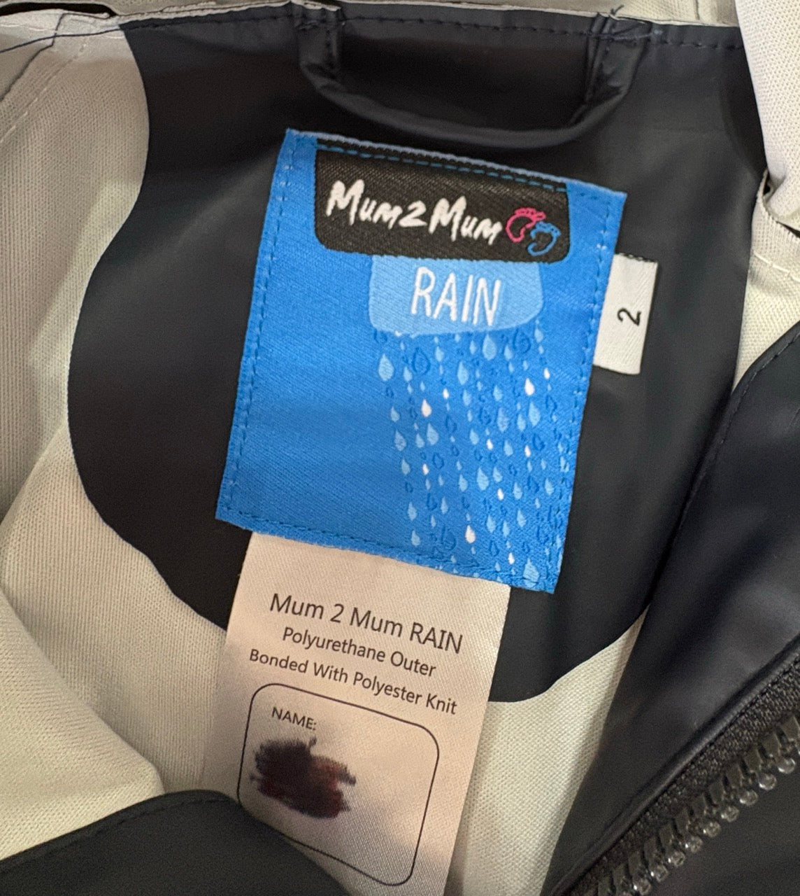 Mum 2 Mum rainwear is made with the latest in fabric technology, it’s soft and comfortable with a 100% waterproof, breathable PU coating, that will keep your child dry and warm at play..