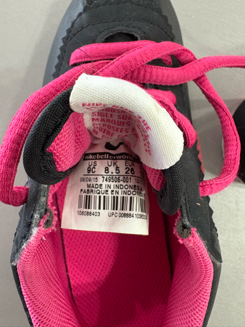 Nike, Cortez EasyOn Pink/Black Shoes, NWOT, Size 8.5C (3-4YO)
