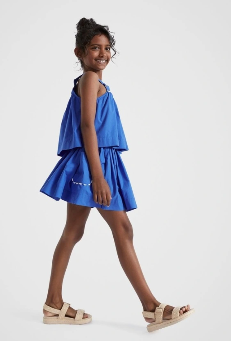 An adorable summer staple, this top features a ricrac trim and a flared cut.