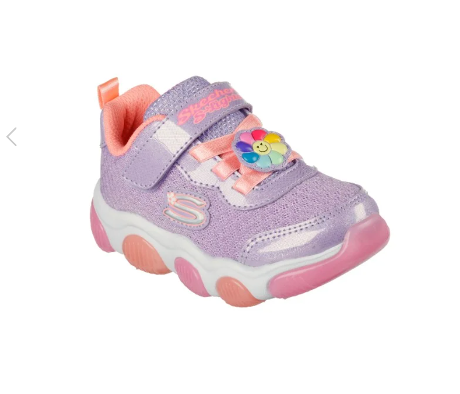 Throw a party on your feet with every step wearing Skechers S-Lights®: Mighty Glow. This fun and sporty design features a colorful gore mesh and synthetic upper with a stretch-lace front and translucent light-up outsole pops.