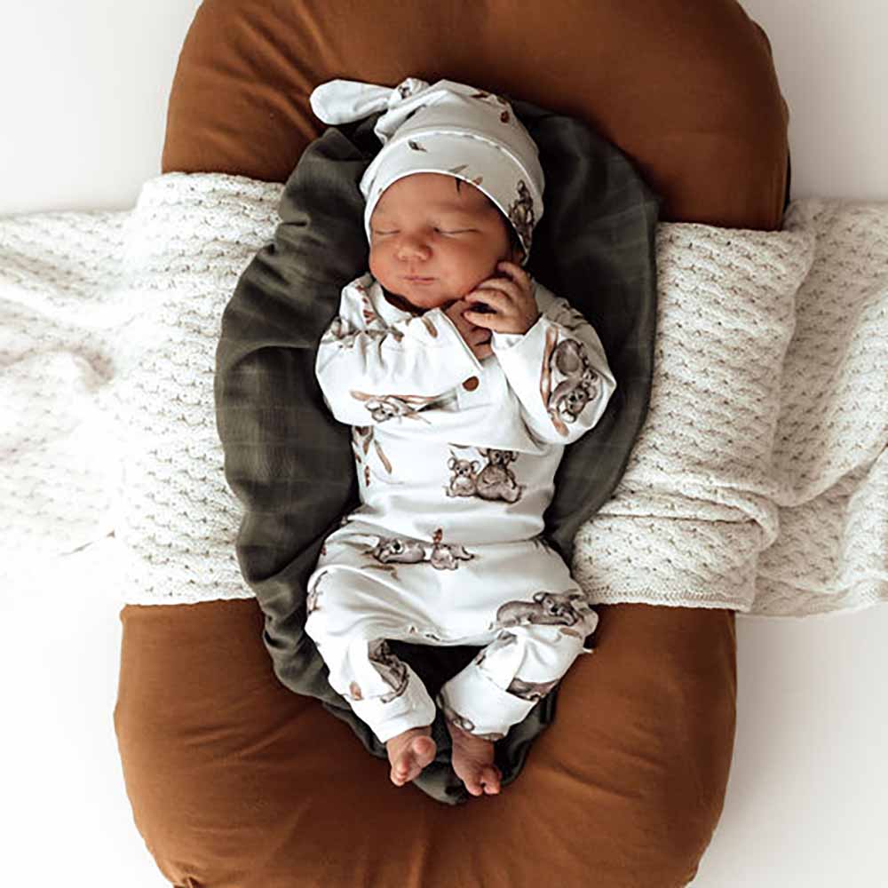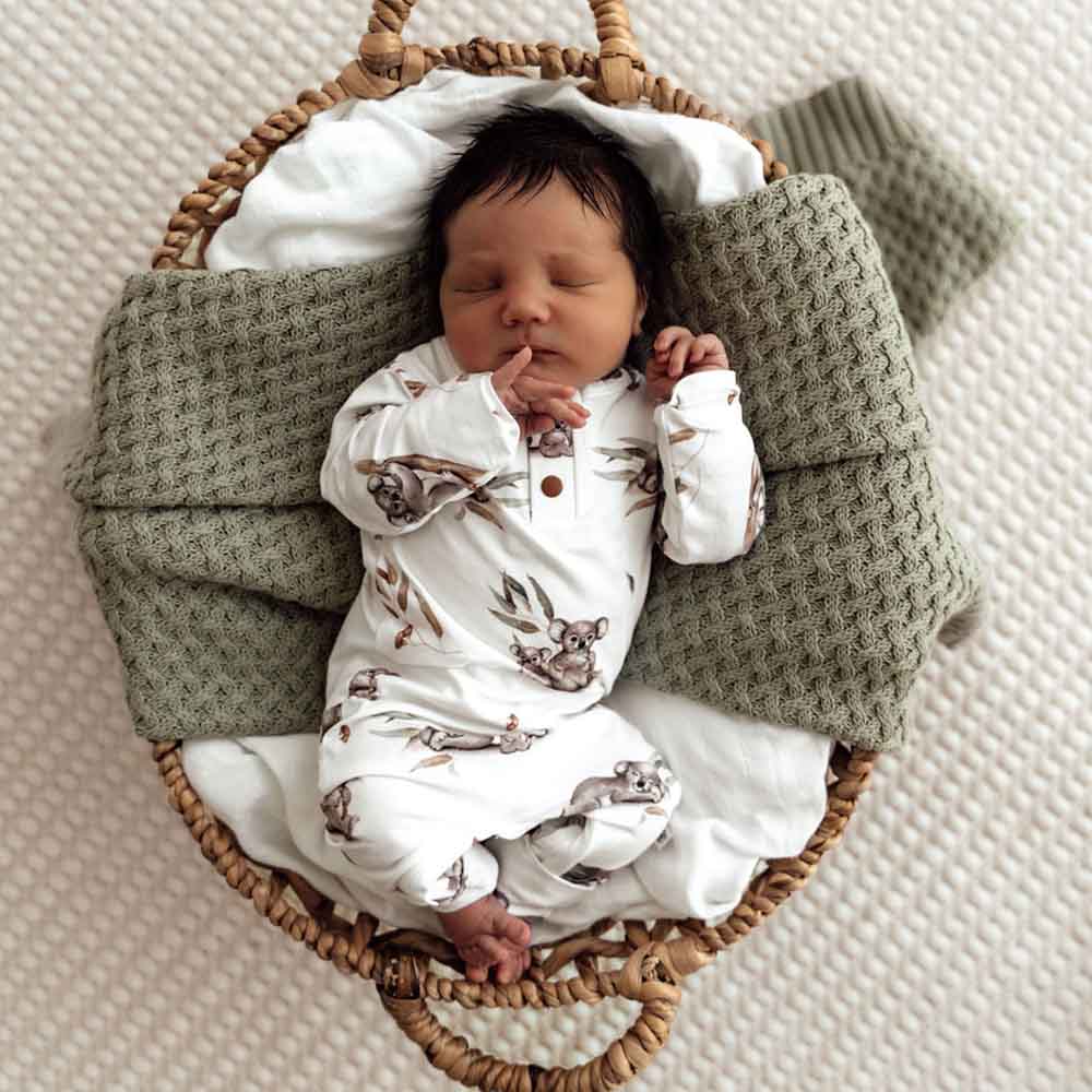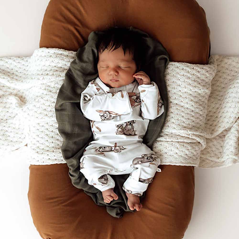 Snuggle Hunny organic growsuits are made for babies and toddlers and our exclusive Koala print celebrates beautiful Australia fauna.