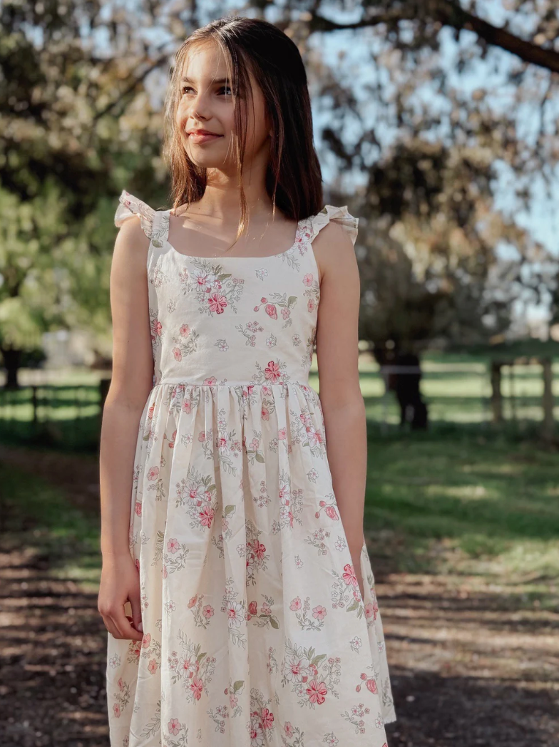A Little Lacey, Girls Floral Tie-Back Dress, EUC, Size 10