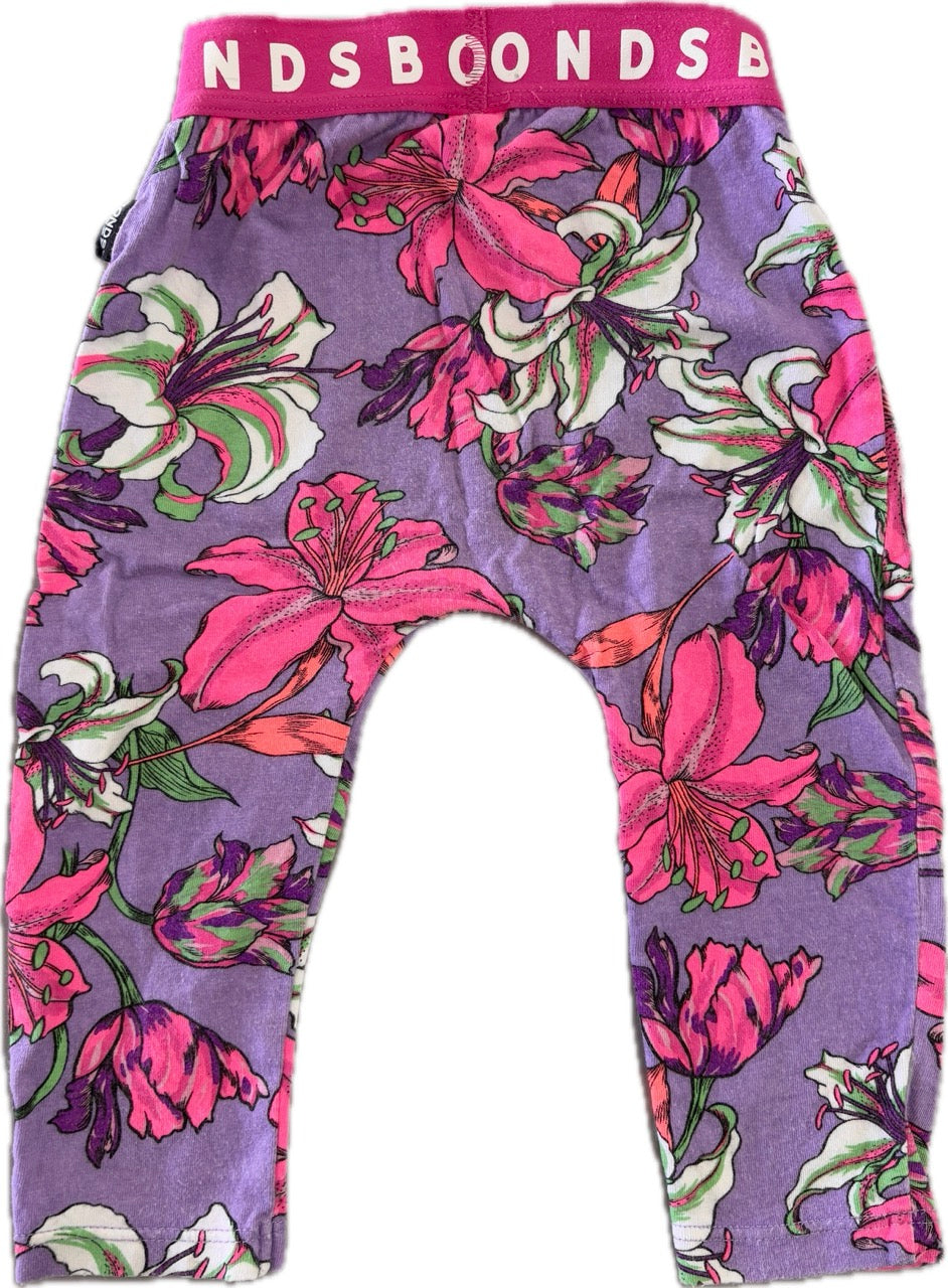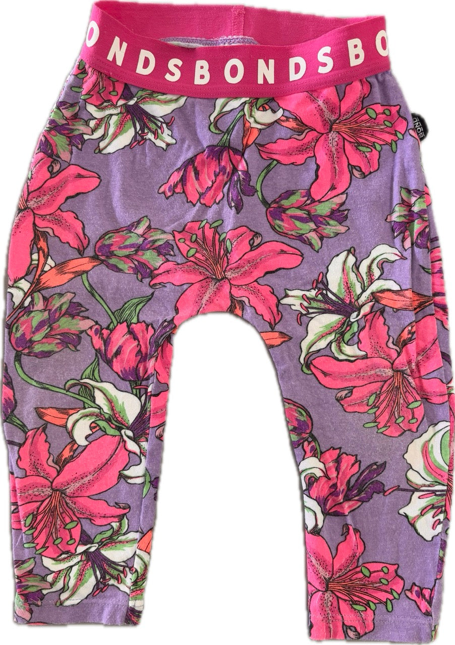 Bonds, Stretchy Leggings Purple Floral, GUC, Size 0 (6-12m)