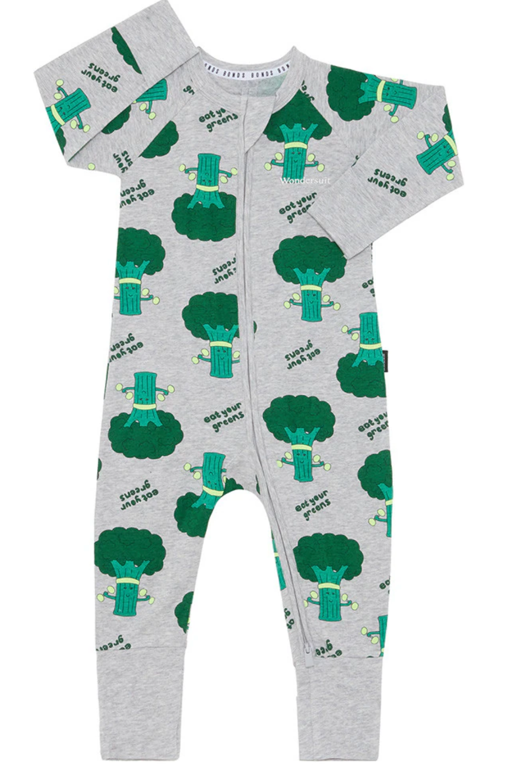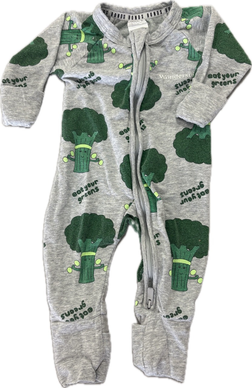 Bonds, Broccoli Eat Your Veg Wondersuit, GUC, Size 0000 (Newborn)