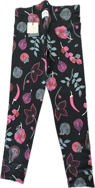 Country Road, Girls Black Flower Fruit Leggings, NWT, Size 8