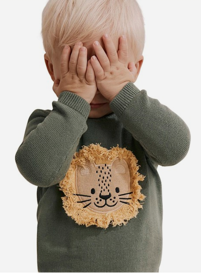 A cosy cotton knit to keep him warm. This long sleeve, crew neck style has a button at the shoulder for easy changes, and a textured lion applique. By choosing Country Road cotton products, you're supporting our investment in Better Cotton's mission. This product is sourced via a system of mass balance and therefore may not contain Better Cotton. A cosy cotton knit to keep him warm. This long sleeve, crew neck style has a button at the shoulder for easy changes, and a textured lion applique. By choosing Country Road cotton products, you're supporting our investment in Better Cotton's mission. This product is sourced via a system of mass balance and therefore may not contain Better Cotton. 100% Cotton