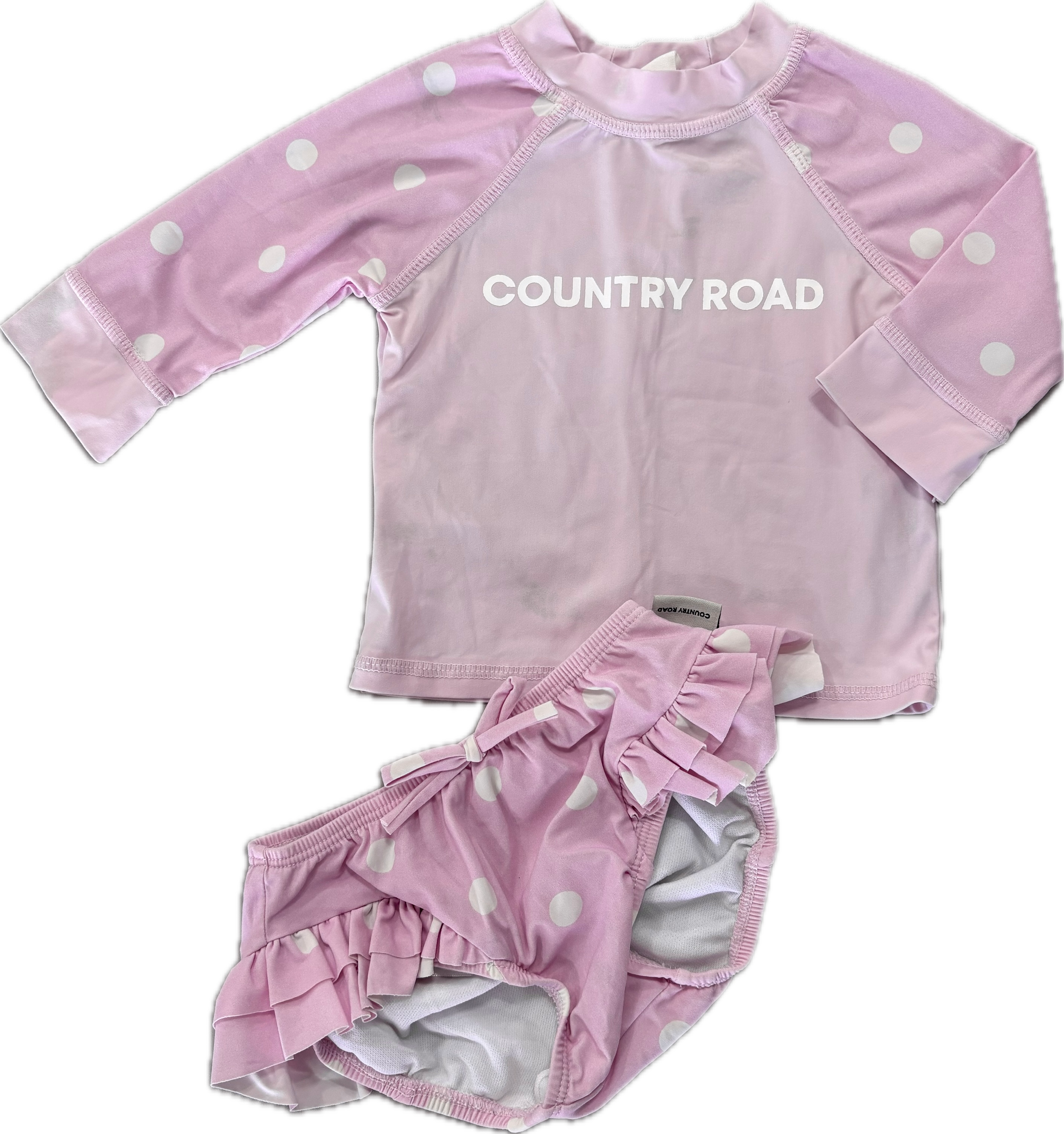 Country Road, Logo Pink Swimsuit Set, EUC, Size 000 (0-3m)