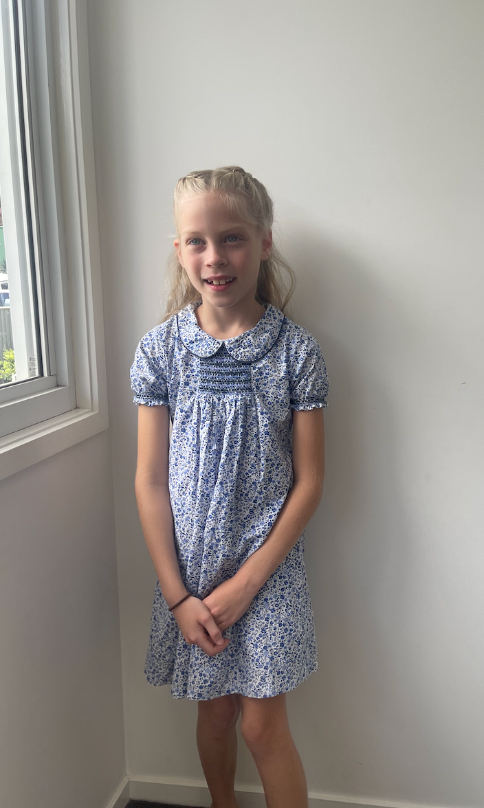 David Jones, Girls Smocked Navy Floral Dress, EUC, Size 6
