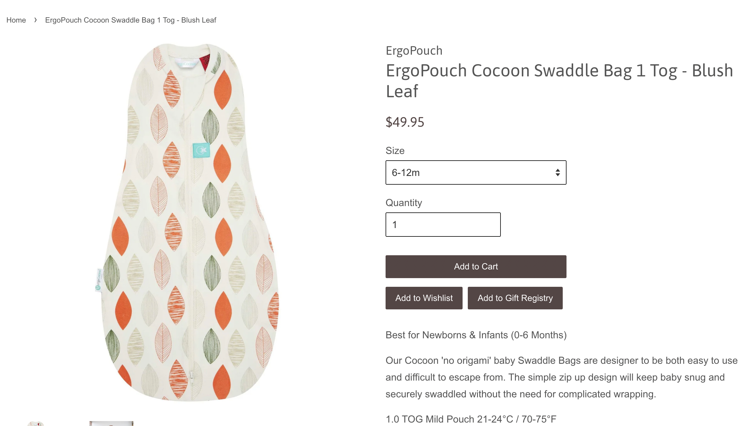 The 1.0 TOG Cocoon Swaddle Bag is a zip-up, TOG-rated swaddle designed to make safe sleep simple for new parents from birth. The multi-functional Cocoon has you covered no matter your newborn's preference for sleep; arms-in, arms-out, or hands up* *Hands-up mode possible when using in conjunction with a Butterfly Cardi, sold separately.