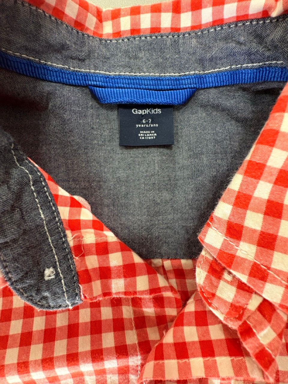 Gap Kids, Boys Gingham Red Long Sleeve Top, EUC, Size 6-7