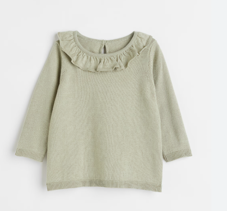 H&M, Flounce-collared Knit Jumper in Olive, GUC, Size 1 (12-18m)