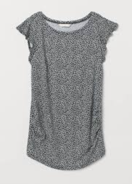 A figure-hugging shirt made of soft, patterned jersey with short ruffle sleeves. The gathered side seams ensure a perfect fit around the stomach.