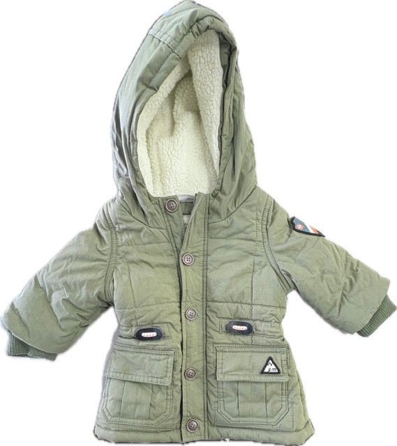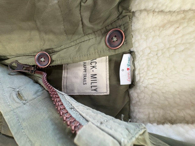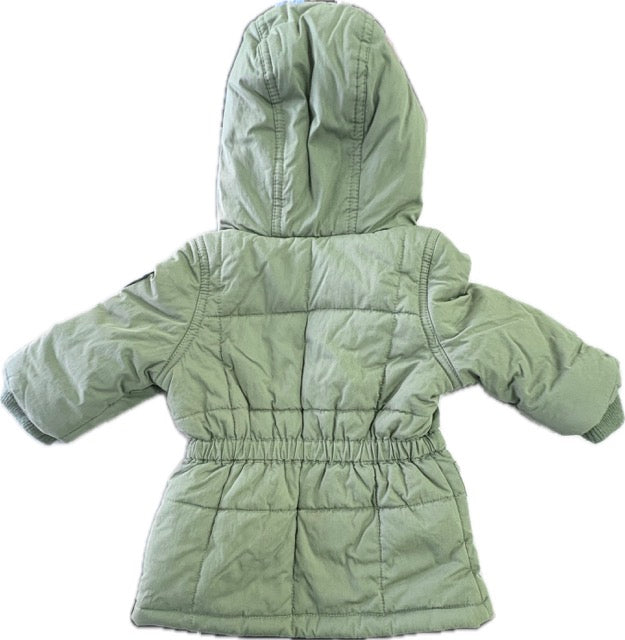 Jack and Milly, Puffer Olive Coat, EUC, Size 0 (6-12m)