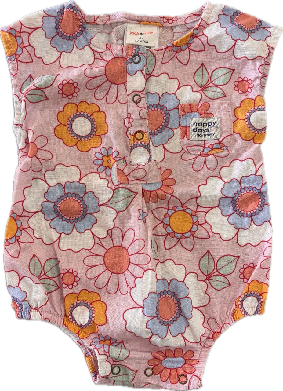 Jack & Milly, Happy Days Floral Romper, EUC, Size 00 (3-6m)