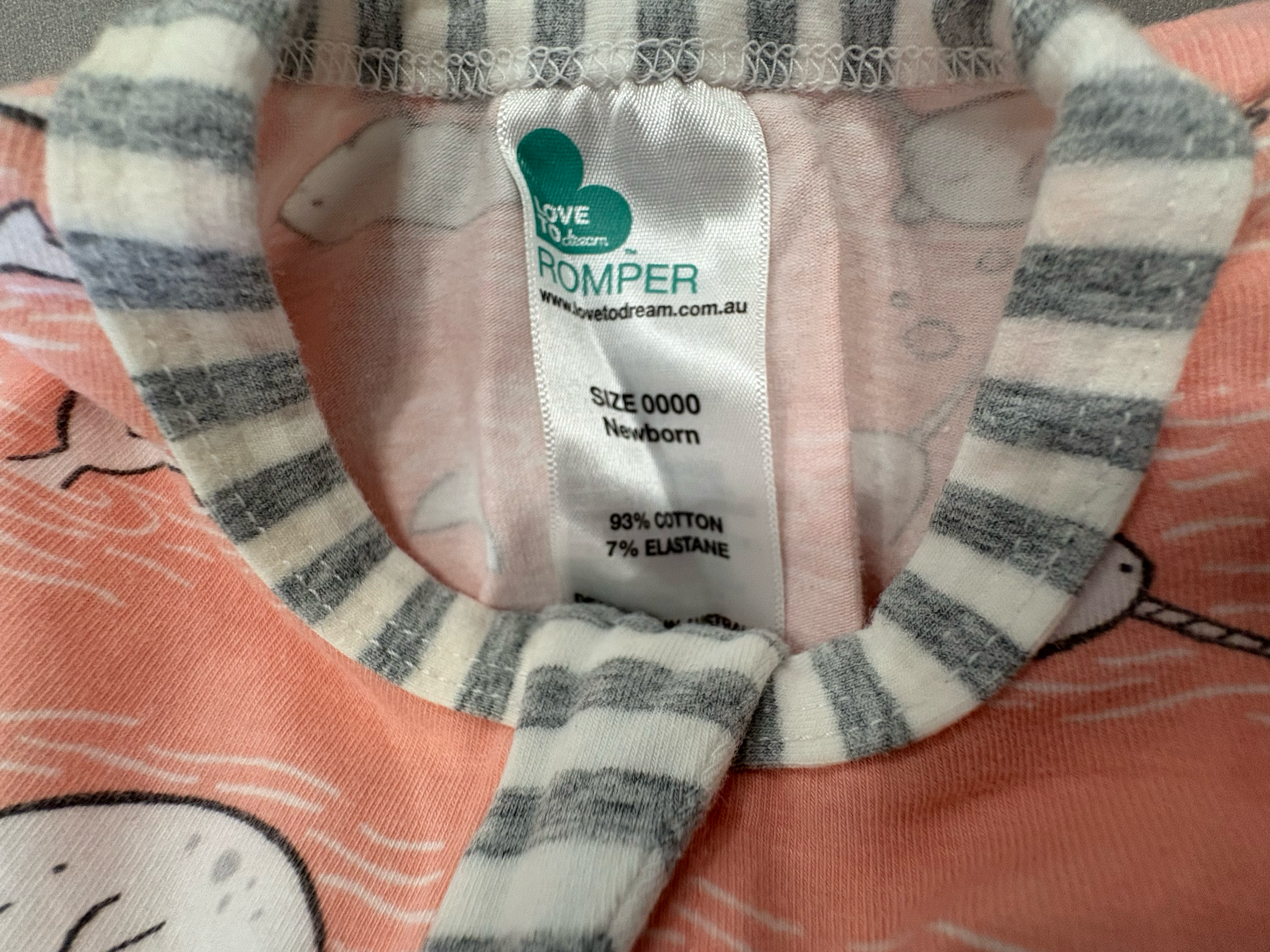 Love to Dream, Footless Romper Pink Cottontail, EUC, Size 0000 (Newborn)
