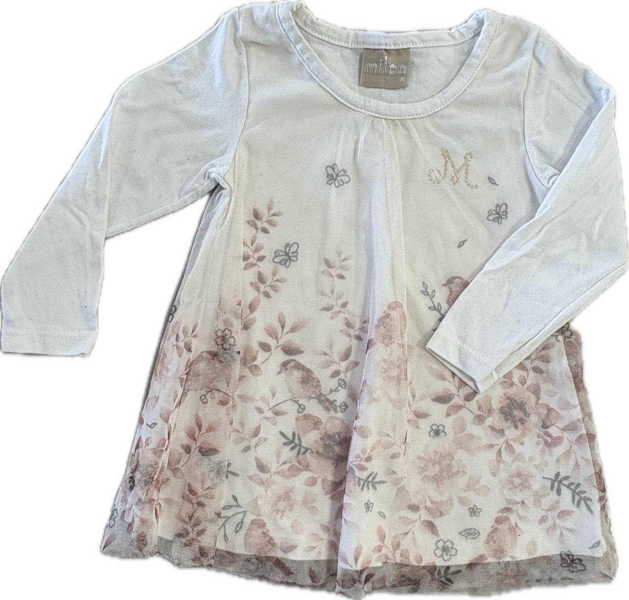 Milon, Girls Long Sleeve Dress w/Sheer, GUC, Size 0 (6-12m)