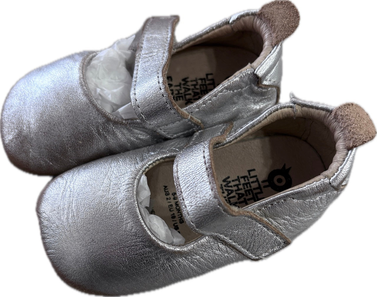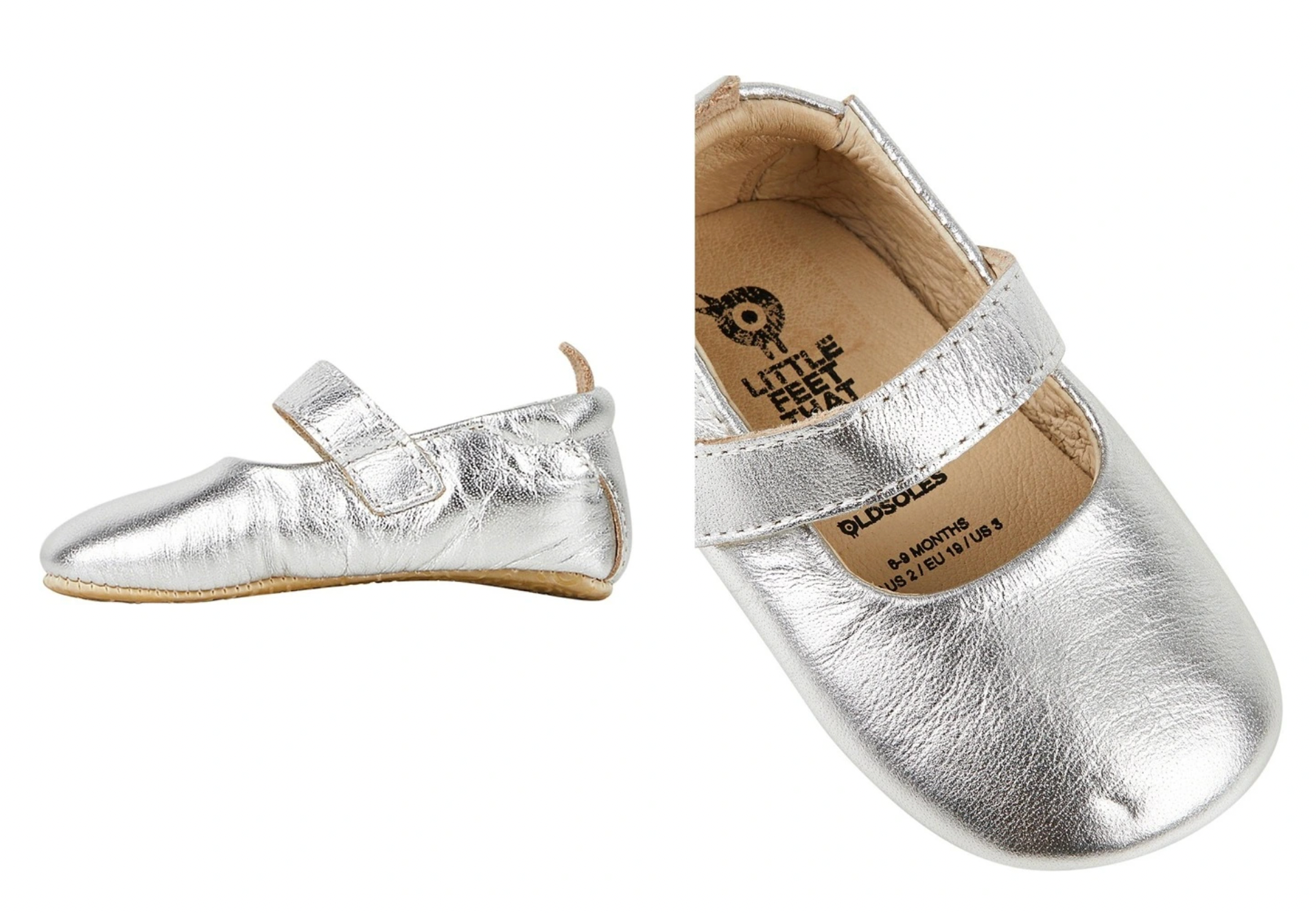 100% natural leather absorbs sweat, keeps feet cool in summer and warm in winter, and a hook and loop strap helps keep their feet secure, whilst a rubber sole helps with grip.